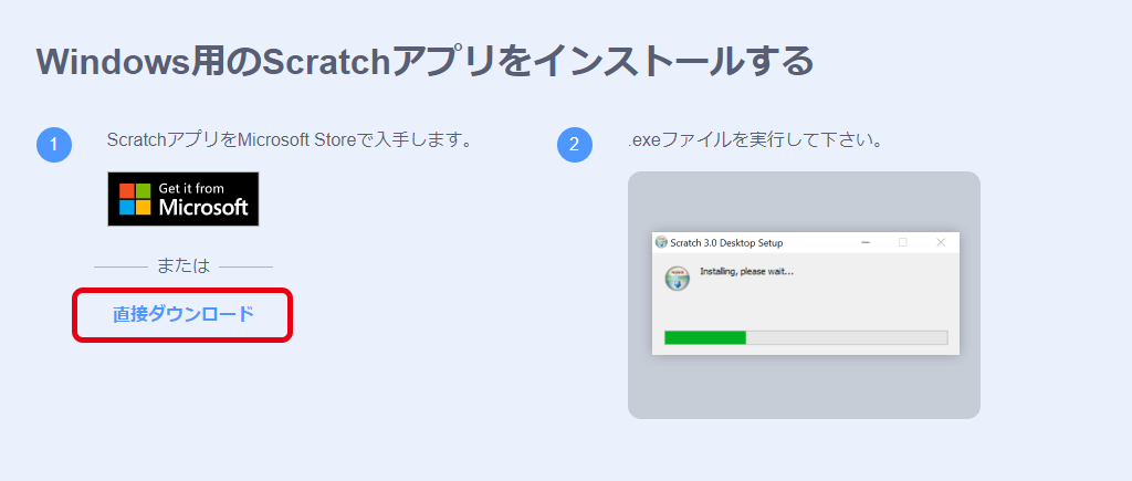 「Scratch 3.XX.XX Setup.exe」をクリック